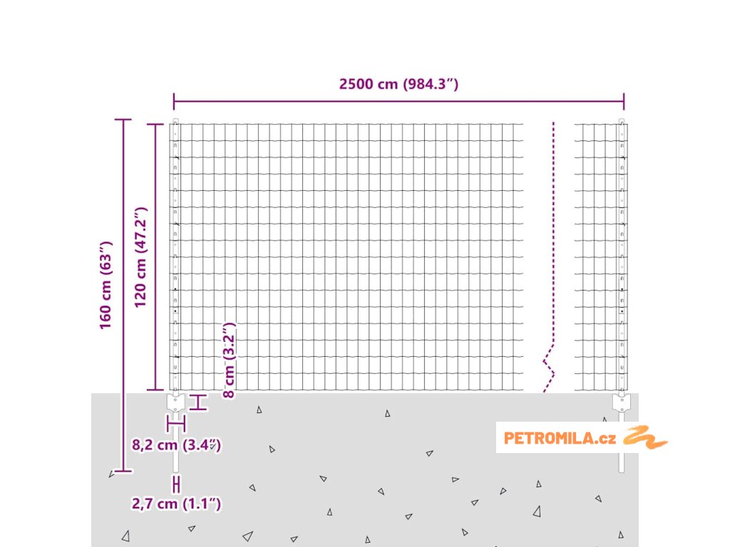 - Celkové rozměry: 2500 x 2.7 x 120 cm (D x Š x V)
