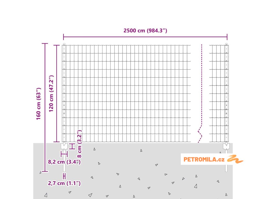 - Celkové rozměry: 2500 x 2.7 x 120 cm (D x Š x V)