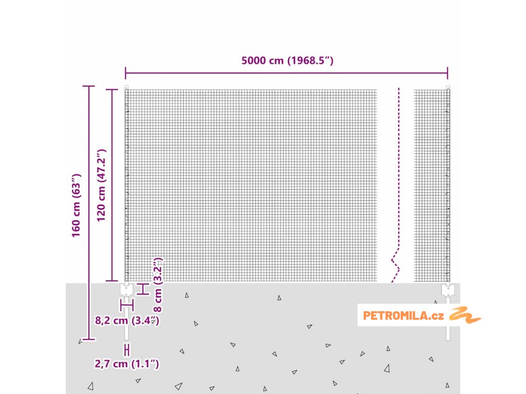- Celkové rozměry: 5000.0 x 2.7 x 120 cm (D x Š x V)