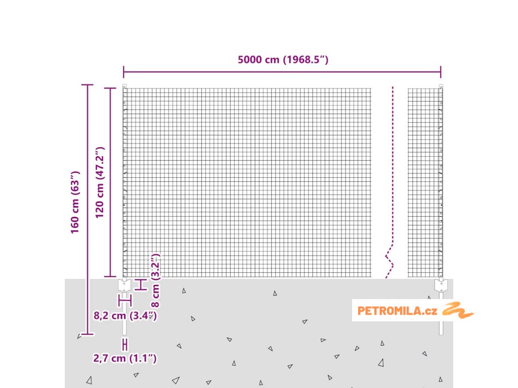 - Celkové rozměry: 5000.0 x 2.7 x 120 cm (D x Š x V)