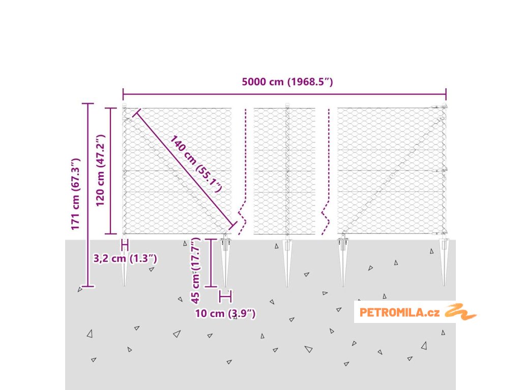- Celkové rozměry: 5000 x 3.2 x 120 cm (D x Š x V)