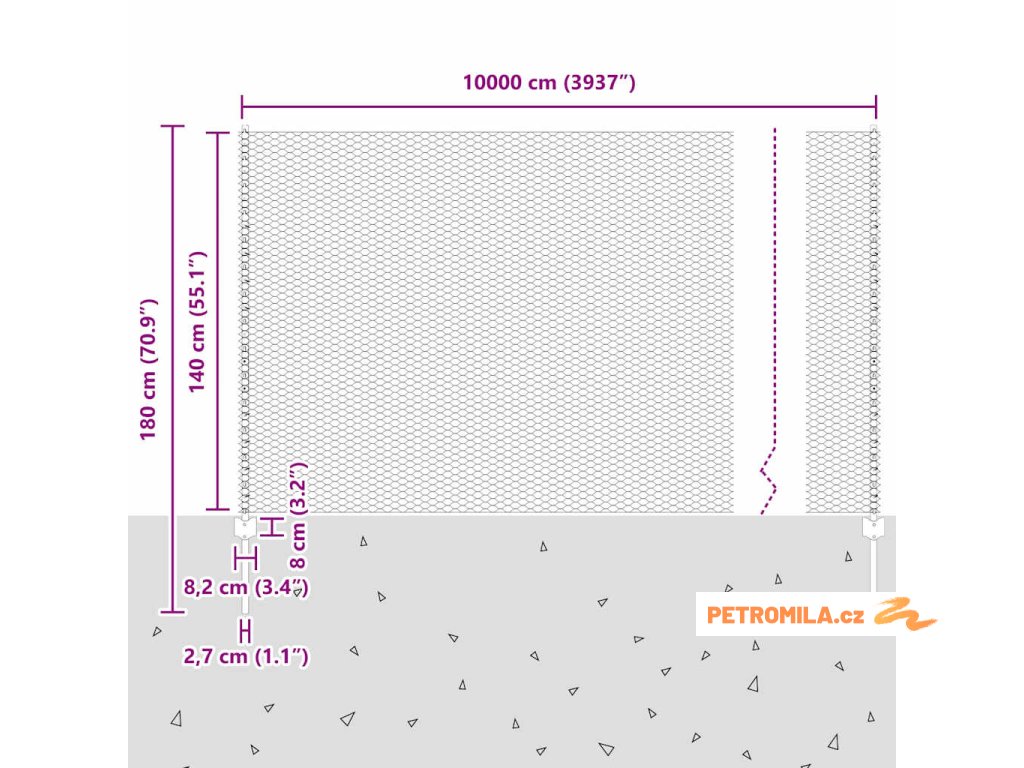 - Celkové rozměry: 10000.0 x 2.7 x 140 cm (D x Š x V)
