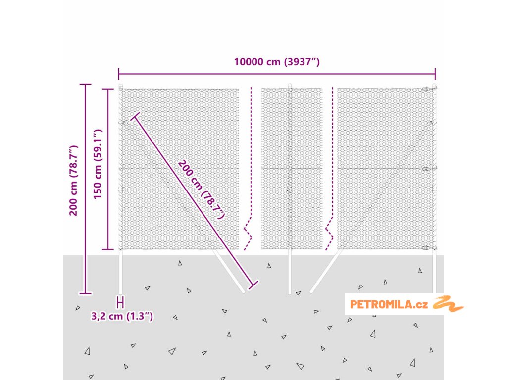 - Celkové rozměry: 10000 x 3.2 x 150 cm (D x Š x V)
