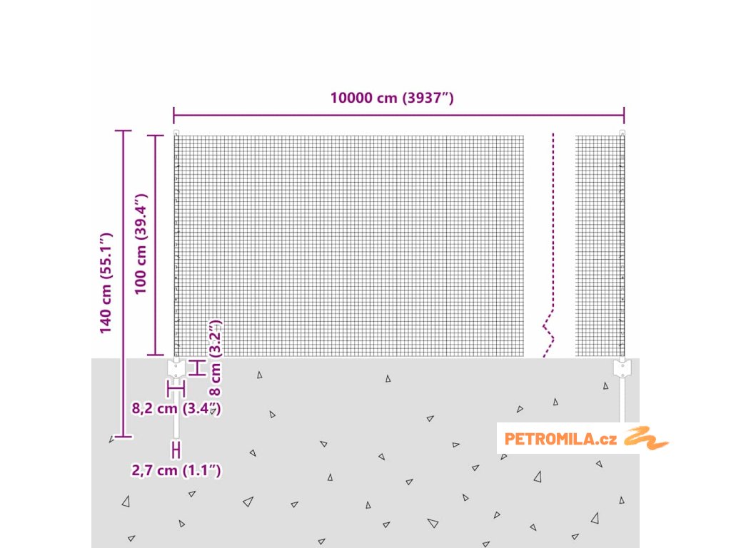 - Celkové rozměry: 10000.0 x 2.7 x 100 cm (D x Š x V)