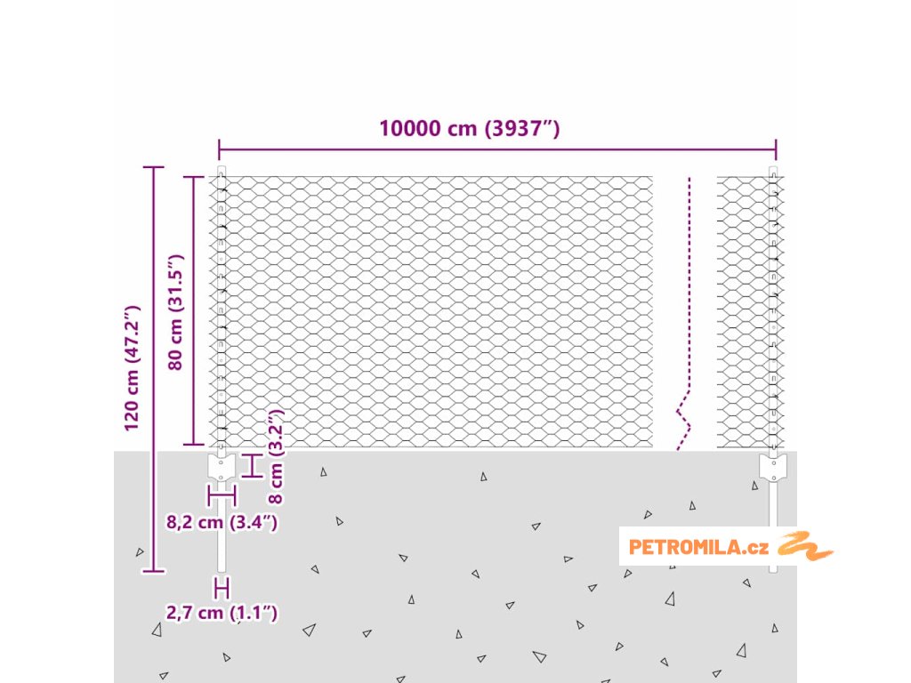 - Celkové rozměry: 10000.0 x 2.7 x 80 cm (D x Š x V)