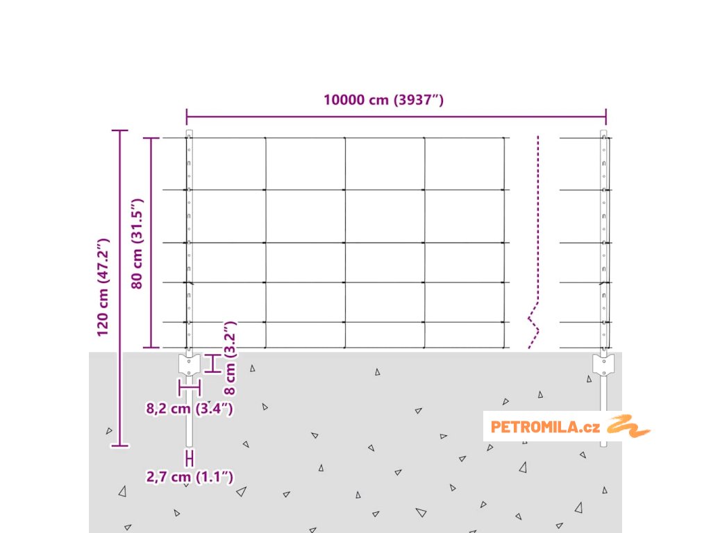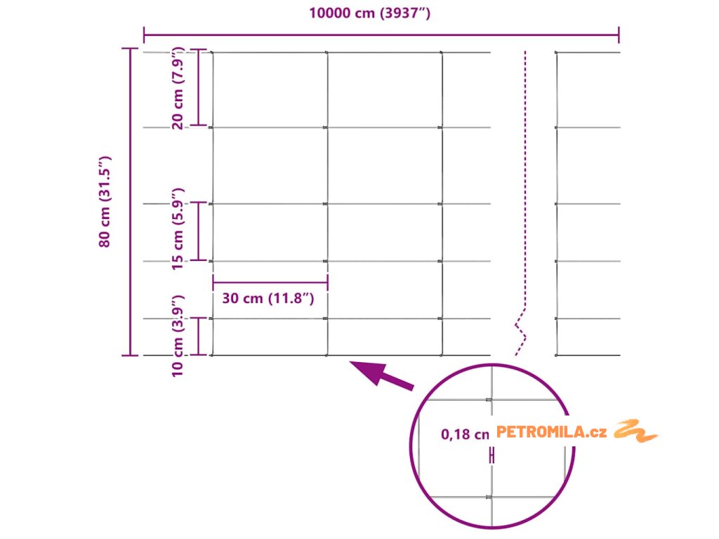 - Celkové rozměry: 10000.0 x 2.7 x 80 cm (D x Š x V)