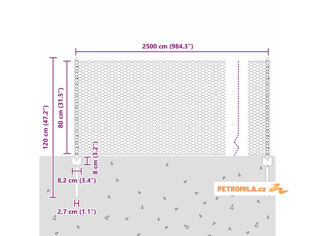 - Celkové rozměry: 2500.0 x 2.7 x 80 cm (D x Š x V)