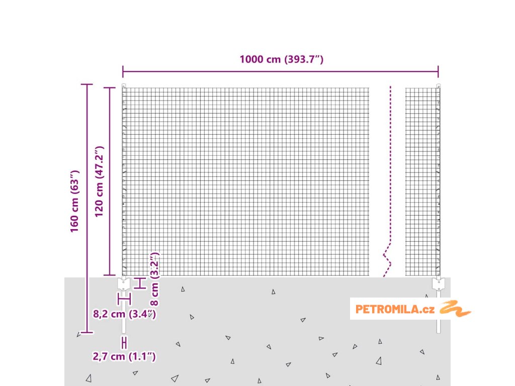 - Celkové rozměry: 1000 x 2.7 x 120 cm (D x Š x V)