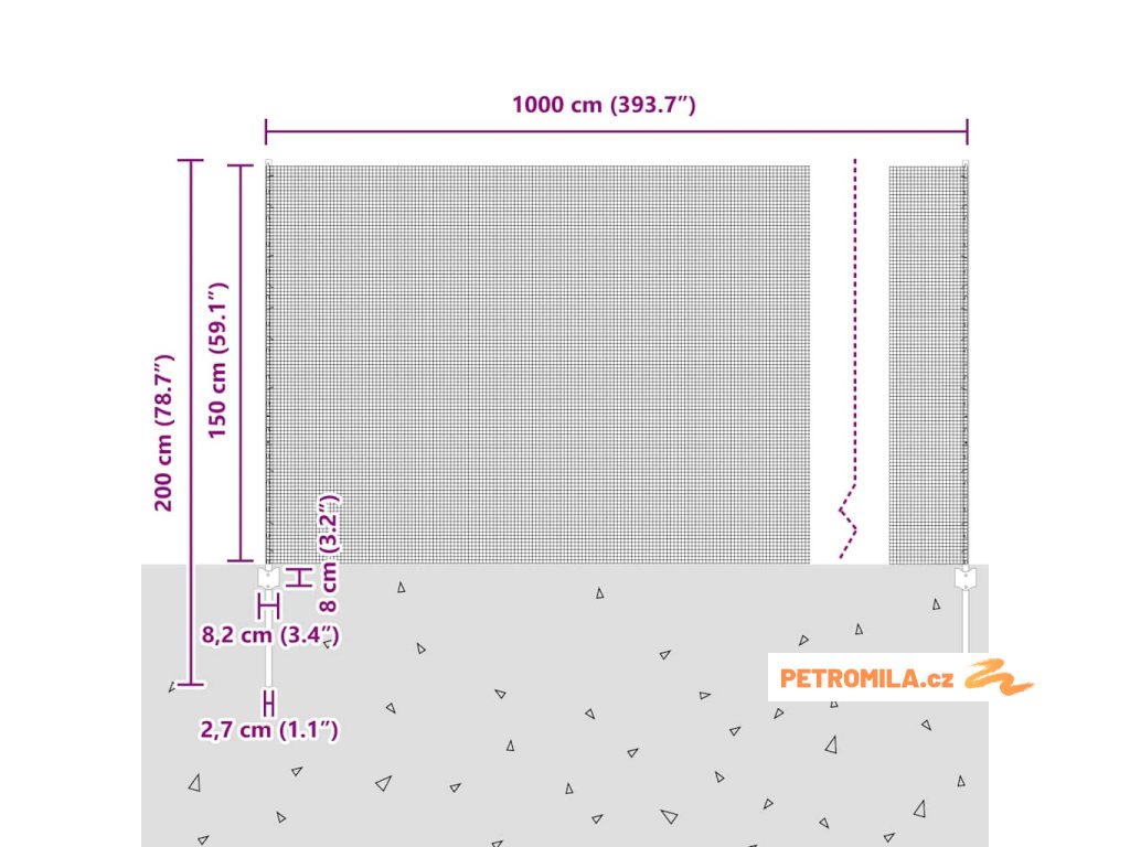 - Celkové rozměry: 1000 x 2.7 x 150 cm (D x Š x V)