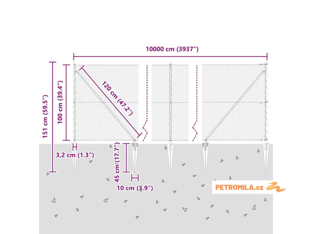 - Celkové rozměry: 10000 x 3.2 x 100 cm (D x Š x V)