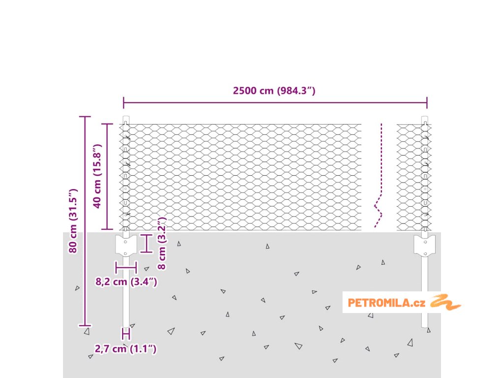 - Celkové rozměry: 2500.0 x 2.7 x 40 cm (D x Š x V)