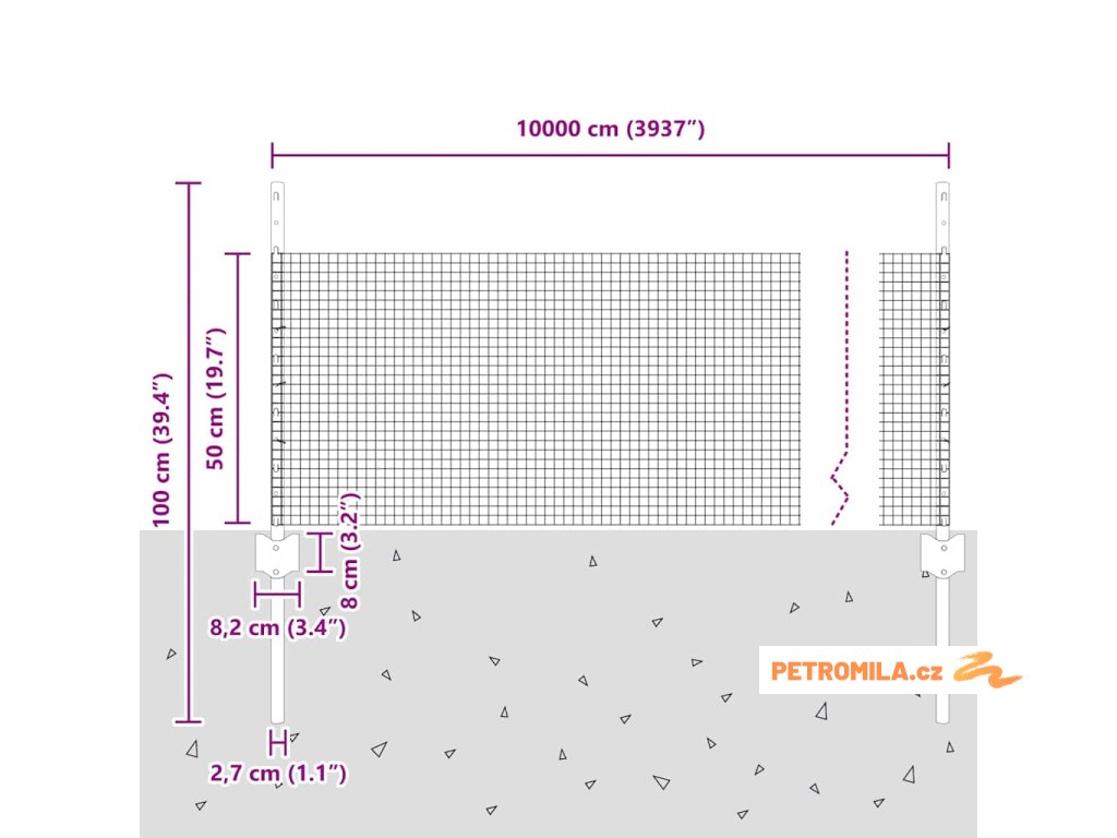 - Celkové rozměry: 10000.0 x 2.7 x 50 cm (D x Š x V)