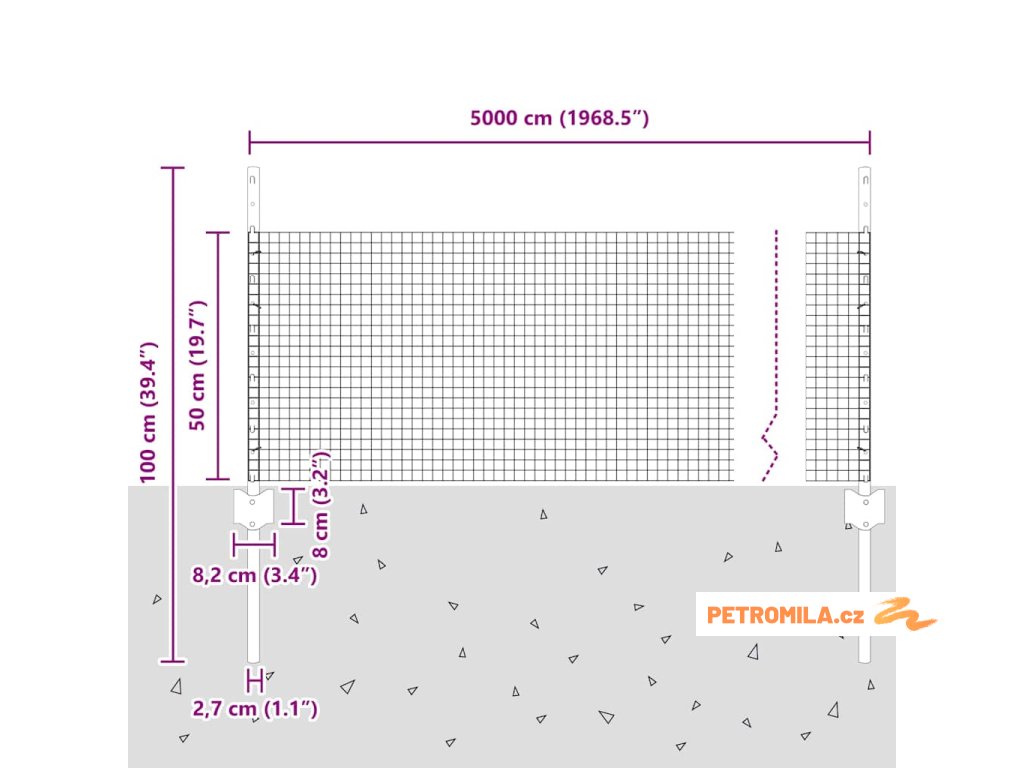 - Celkové rozměry: 5000.0 x 2.7 x 50 cm (D x Š x V)