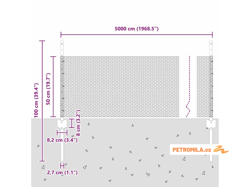 - Celkové rozměry: 5000.0 x 2.7 x 50 cm (D x Š x V)