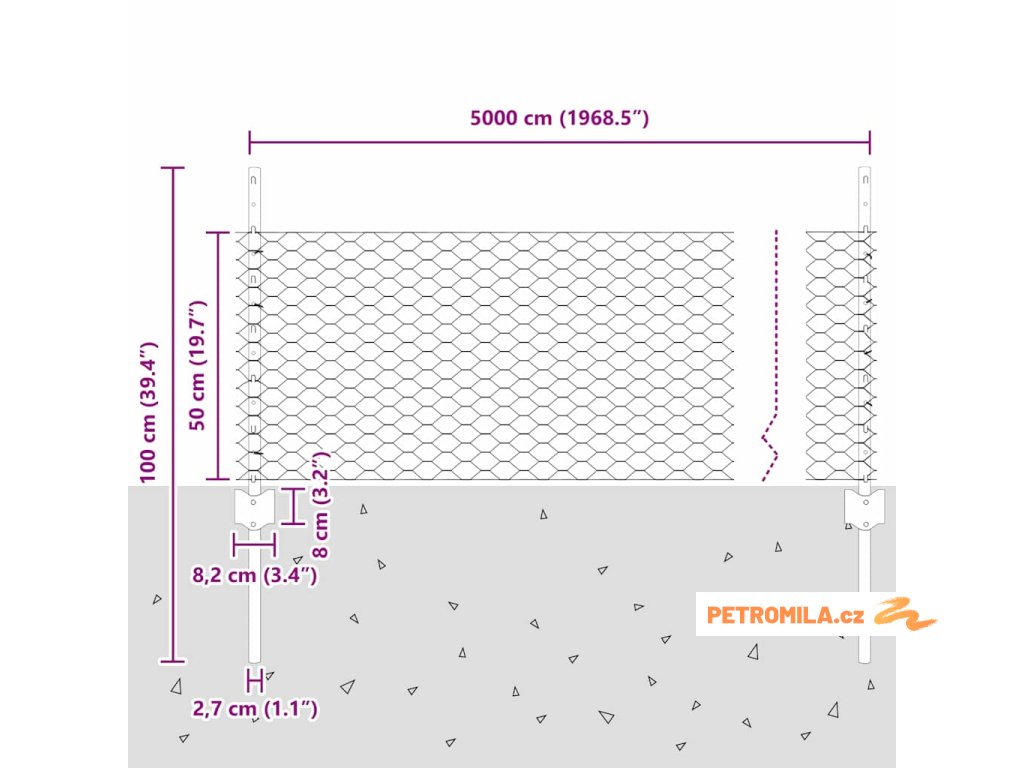 • Celkové rozměry: 5000.0 x 2.7 x 50 cm (D x Š x V)