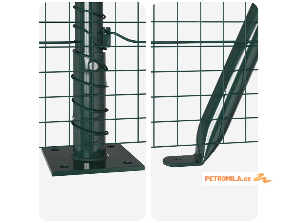 Odolnost proti UV záření: Plot je vyroben z vysoce kvalitní oceli, ošetřené speciálním UV-odolným materiálem, aby odolávalo prodloužené expozici slunečnímu záření. To nejen chrání integritu a vzhled plotu, ale také zajišťuje, že časem zůstane vypadat jako nový. To je ideální pro venkovní použití, protože odolává vyblednutí a udržuje svůj živý vzhled po celý rok.,Povětrnostně odolné panely: Navrženo pro všechny klima, tyto panely poskytují vynikající odolnost proti dešti, větru a sezónním vlivům. Práškovaná povrchová úprava dodává další vrstvu ochrany, což činí tento plot ideálním pro pobřežní, městské nebo venkovské prostředí, kde může být počasí nepředvídatelné. Jeho odolnost zaručuje, že vaše plotové řešení vydrží s minimální údržbou.,Vlastnosti odolné proti korozi: Tento plot nejenže odolává povětrnostním vlivům, ale také odolává rzi a korozi v průběhu času. Specializovaný nátěr aplikovaný na ocel zajišťuje dlouhotrvající výkon bez rzi, což poskytuje klid na duši, že po instalaci bude plot vyžadovat minimální údržbu a udrží svou strukturální integritu po mnoho let.,Jednoduchost sestavení: Ačkoli je sestavení nutné, jednoduché pokyny výrobce činí úkol zvládnutelným pro majitele domů. Jakmile je postavený, plot poskytuje nenápadnou, ale účinnou periferní bariéru, která vytváří bezpečné a přitažlivé prostředí, jež se bezproblémově integruje do zahradních a terasových prostor.,Další zabezpečovací prvek: Pro ty, kdo mají přísné požadavky na zabezpečení, pokyny k sestavení doporučují ujistit se, že dno plotu se dotýká země. To zabraňuje nežádoucím mezerám a nabízí lepší udržení nejen pro domácí mazlíčky a děti, ale také dále zpevňuje váš venkovní prostor proti vniknutí.- Barva: Zelená