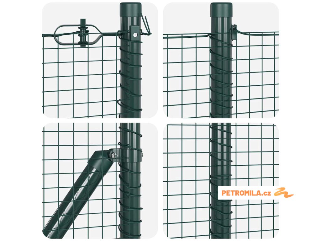 Odolnost proti UV záření: Plot je vyroben z vysoce kvalitní oceli, ošetřené speciálním UV-odolným materiálem, aby odolávalo prodloužené expozici slunečnímu záření. To nejen chrání integritu a vzhled plotu, ale také zajišťuje, že časem zůstane vypadat jako nový. To je ideální pro venkovní použití, protože odolává vyblednutí a udržuje svůj živý vzhled po celý rok.,Povětrnostně odolné panely: Navrženo pro všechny klima, tyto panely poskytují vynikající odolnost proti dešti, větru a sezónním vlivům. Práškovaná povrchová úprava dodává další vrstvu ochrany, což činí tento plot ideálním pro pobřežní, městské nebo venkovské prostředí, kde může být počasí nepředvídatelné. Jeho odolnost zaručuje, že vaše plotové řešení vydrží s minimální údržbou.,Vlastnosti odolné proti korozi: Tento plot nejenže odolává povětrnostním vlivům, ale také odolává rzi a korozi v průběhu času. Specializovaný nátěr aplikovaný na ocel zajišťuje dlouhotrvající výkon bez rzi, což poskytuje klid na duši, že po instalaci bude plot vyžadovat minimální údržbu a udrží svou strukturální integritu po mnoho let.,Jednoduchost sestavení: Ačkoli je sestavení nutné, jednoduché pokyny výrobce činí úkol zvládnutelným pro majitele domů. Jakmile je postavený, plot poskytuje nenápadnou, ale účinnou periferní bariéru, která vytváří bezpečné a přitažlivé prostředí, jež se bezproblémově integruje do zahradních a terasových prostor.,Další zabezpečovací prvek: Pro ty, kdo mají přísné požadavky na zabezpečení, pokyny k sestavení doporučují ujistit se, že dno plotu se dotýká země. To zabraňuje nežádoucím mezerám a nabízí lepší udržení nejen pro domácí mazlíčky a děti, ale také dále zpevňuje váš venkovní prostor proti vniknutí.- Barva: Zelená