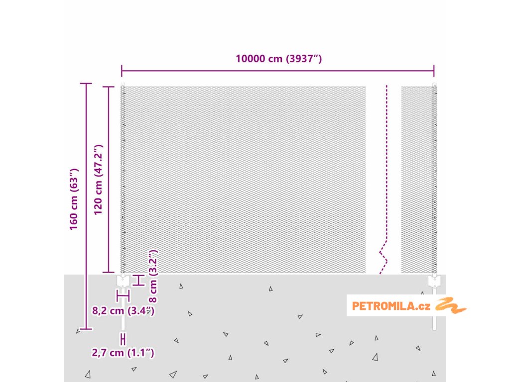 - Celkové rozměry: 10000.0 x 2.7 x 120 cm (D x Š x V)