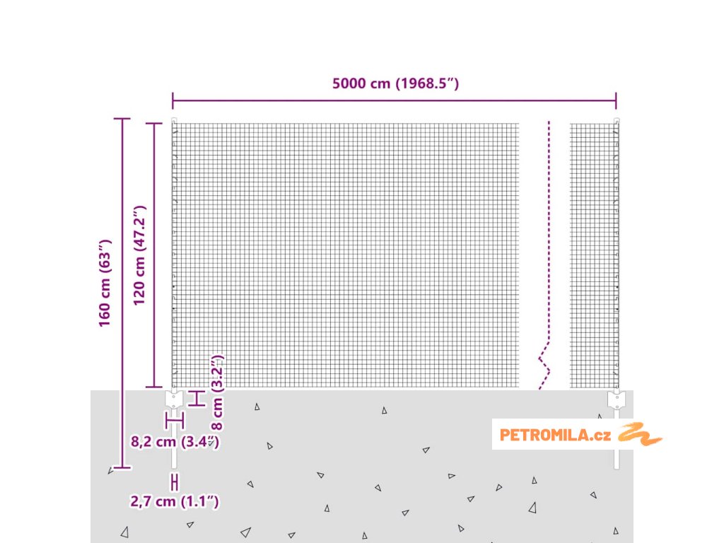 - Celkové rozměry: 5000.0 x 2.7 x 120 cm (D x Š x V)