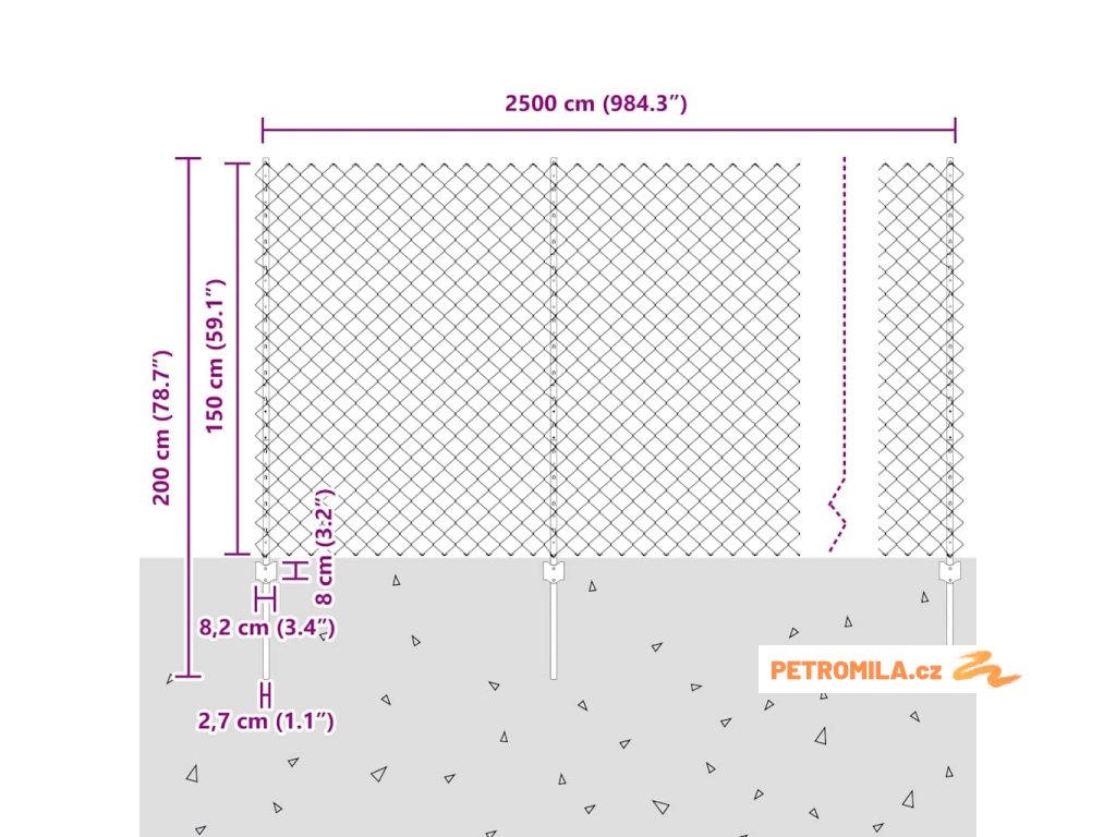 - Celkové rozměry: 2500 x 2.7 x 150 cm (D x Š x V)