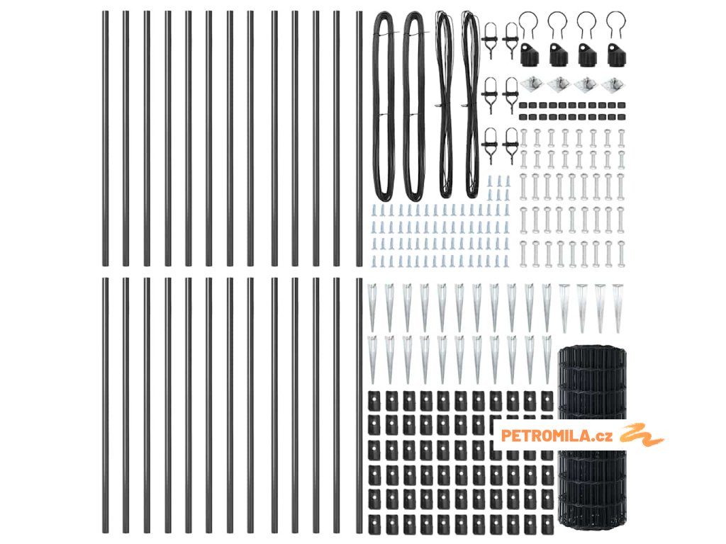 Zahradní plot s kopím nahoře černý 239 x 175 cm, práškově lakovaná ocel
