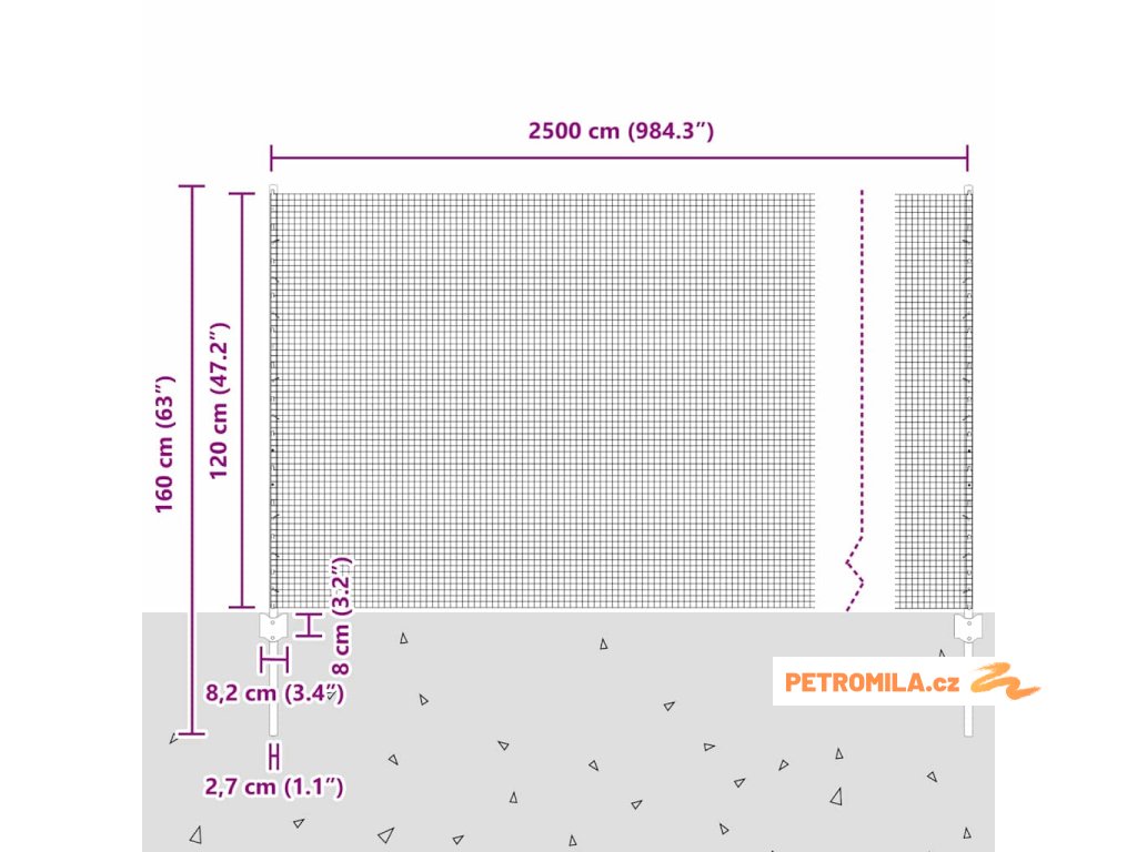 - Celkové rozměry: 2500 x 2,7 x 120 cm (D x Š x V)