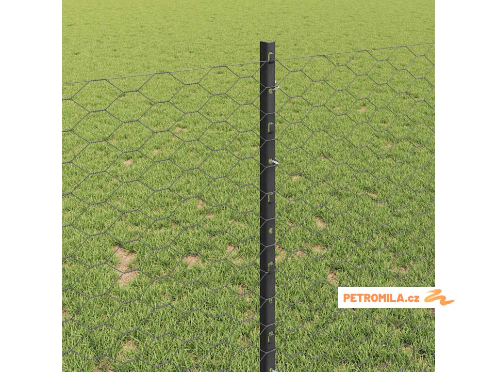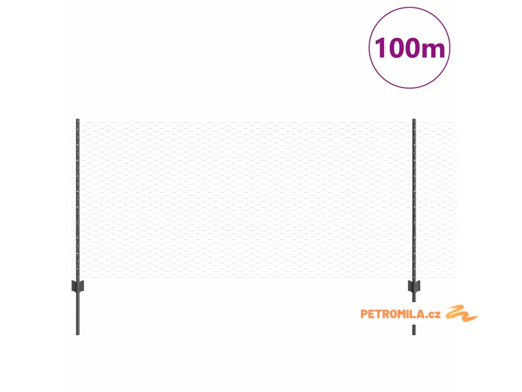 Plot s sloupkem Šedá 1 x 100 m Ocel a PVC