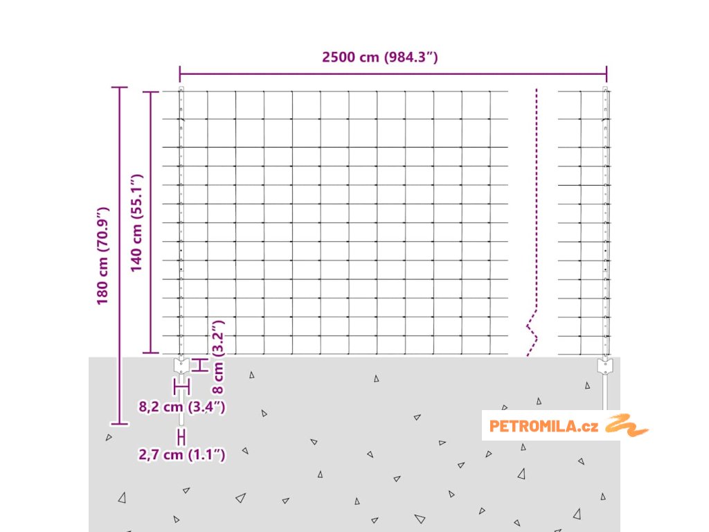 - Celkové rozměry: 2500 x 2,7 x 140 cm (D x Š x V)
