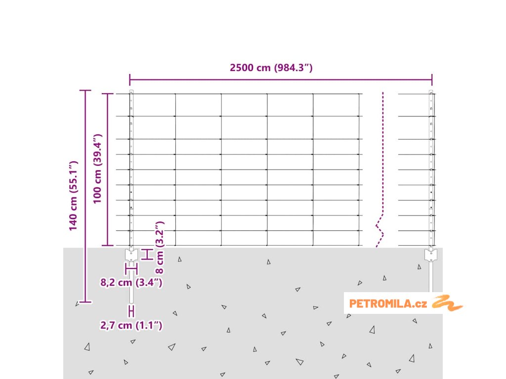 - Celkové rozměry: 2500 x 2,7 x 100 cm (D x Š x V)