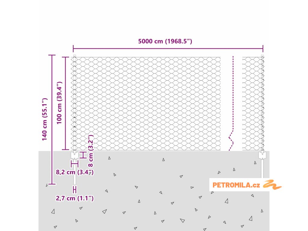 - Celkové rozměry: 5000 x 2,7 x 100 cm (D x Š x V)