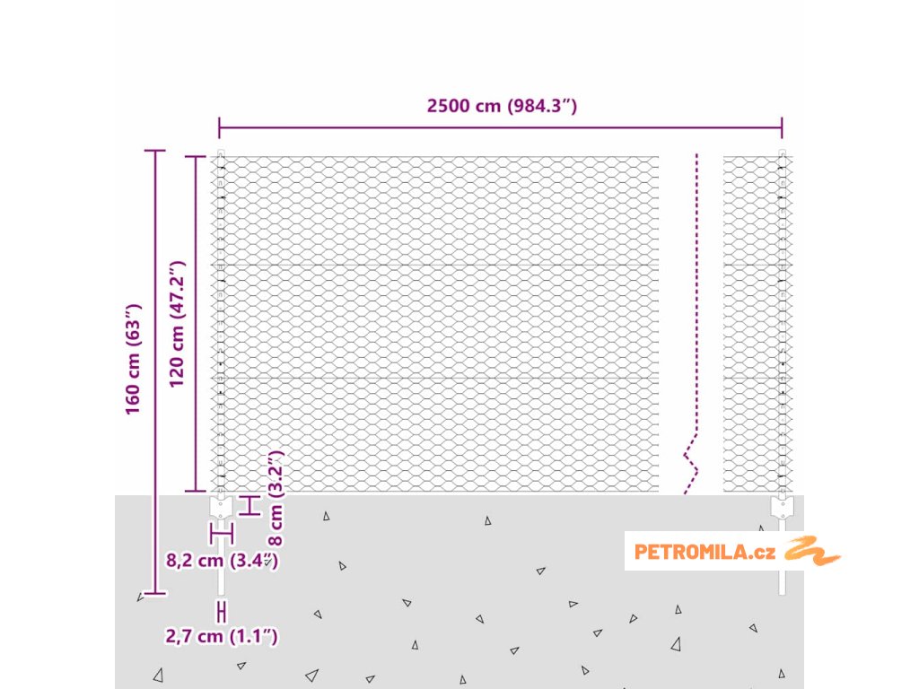 - Celkové rozměry: 2500 x 2,7 x 120 cm (D x Š x V)