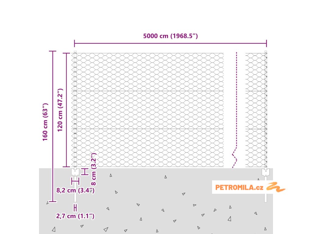 - Celkové rozměry: 5000 x 2,7 x 120 cm (D x Š x V)