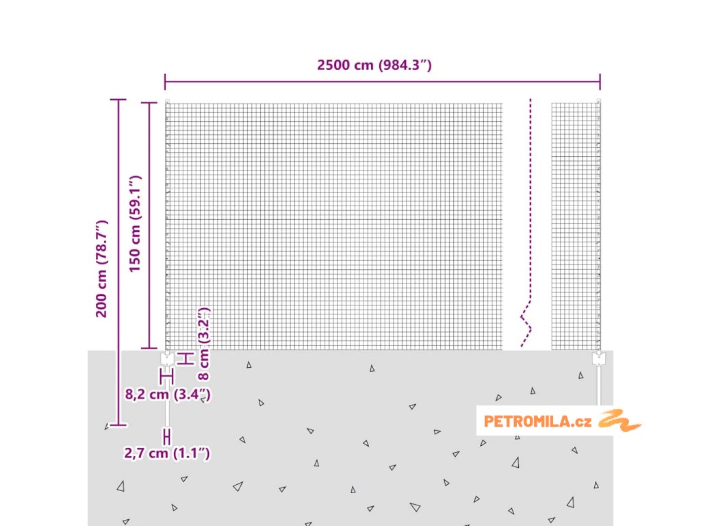 - Celkové rozměry: 2500 x 2,7 x 150 cm (D x Š x V)