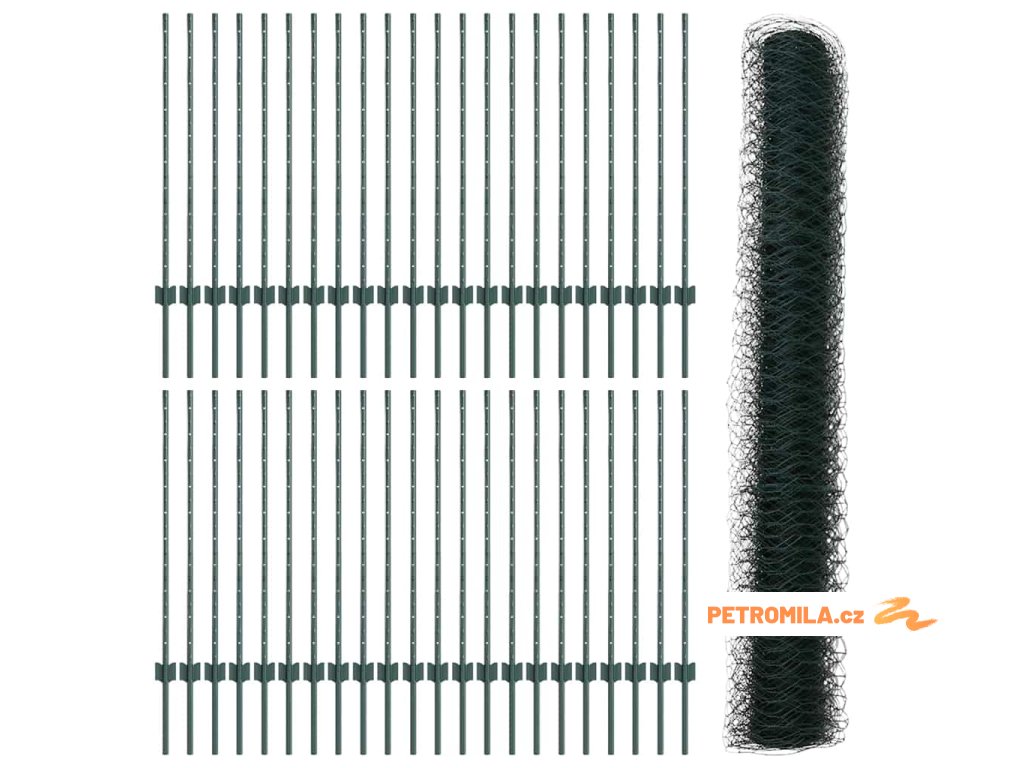 Plotový sloupek. Zelená 25 x 1,5 m (síť 16 x 16 mm) Ocel a PVC