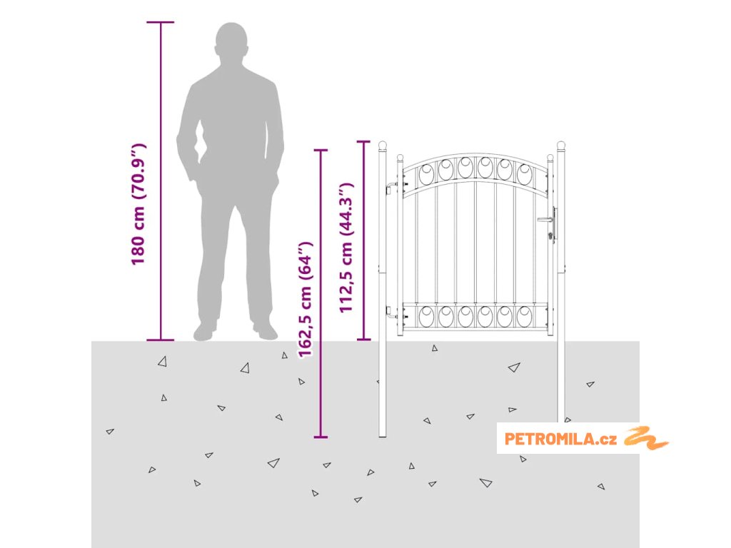 Elegantní zaoblený design naší branky je velmi atraktivní. Silné vodorovné příčky zpevňují její rám a zvyšují její bezpečnost. Branka tak tvoří působivý vstup na váš pozemek. Je vyrobená z vysoce odolné oceli a ošetřená práškovým lakem, který ji chrání před rzí a korozí. Zahradní branka je rovněž vybavena zamykacím systémem se třemi zahrnutými klíči. Dodáváme ji spolu se dvěma robustními sloupky s pevnými závěsy pro snadnou instalaci.