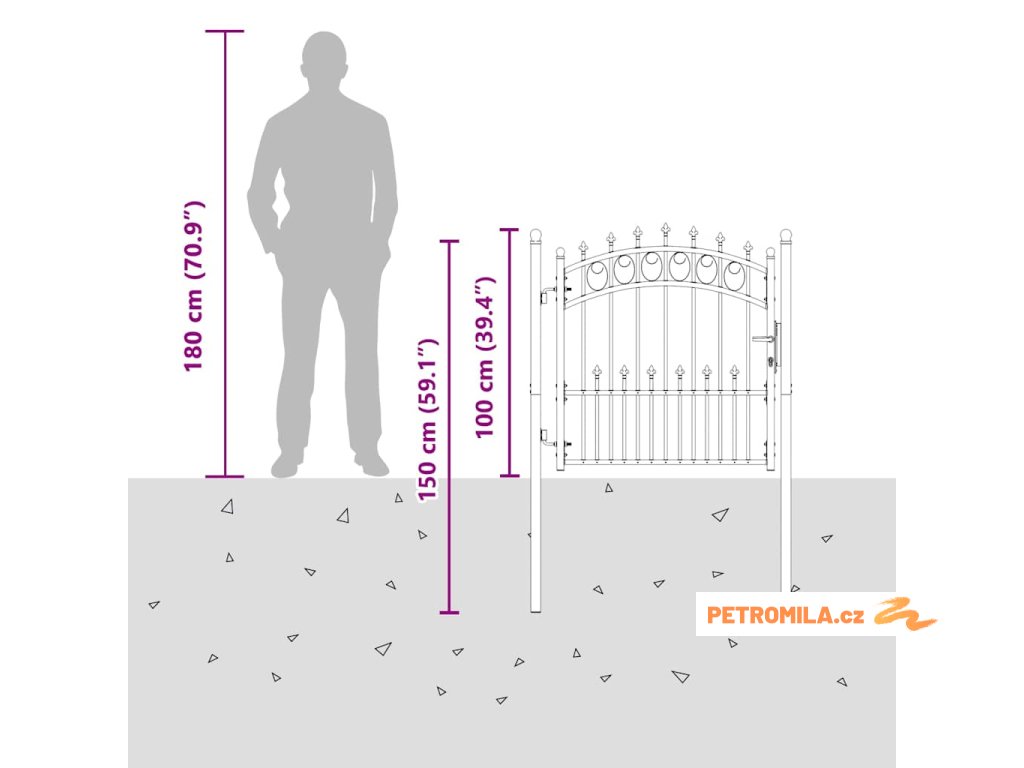 Plotová branka je vyrobená z vysoce odolné oceli, má robustní konstrukci s práškovým nástřikem proti rzi a korozi. Zahradní branka je vybavená vertikálním pruty zakončenými hroty a silnou vodorovnou výztuží, takže vám poskytne vysoký stupeň zabezpečení. Klenutý design jí dodává na eleganci. Součástí balení jsou dva pevné sloupky s robustními závěsy pro snadnou instalaci a také zámek se třemi klíči.