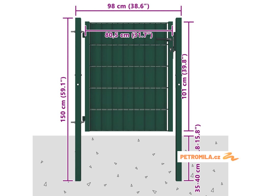Plotová branka PVC a ocel 100 x 100 cm zelená