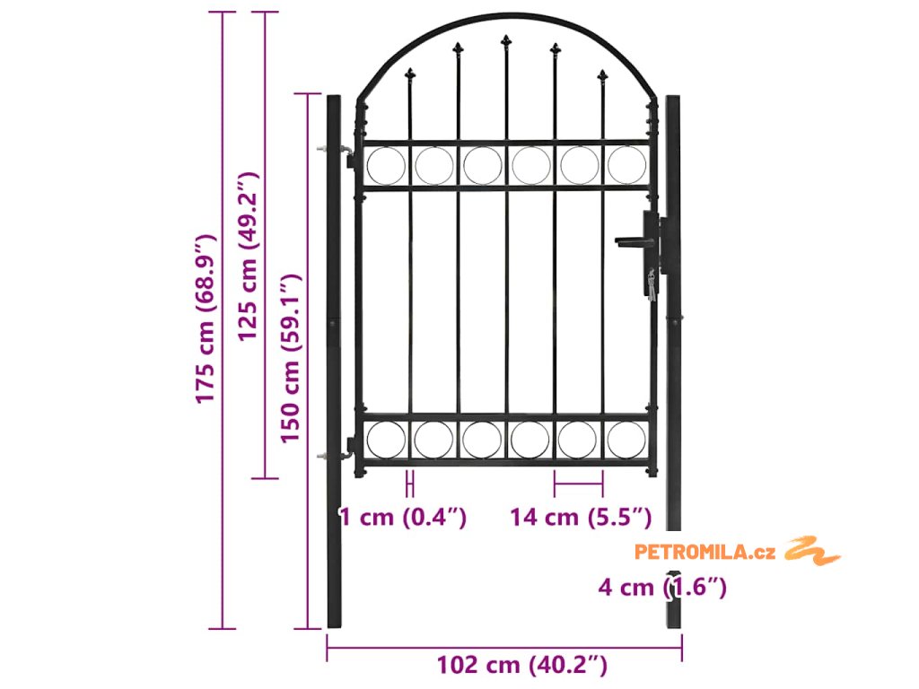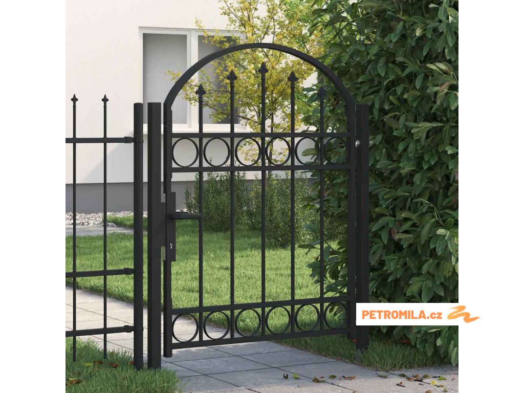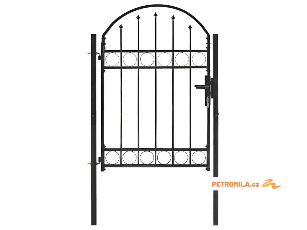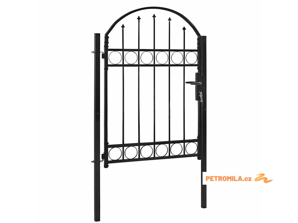 Plotová branka s klenutým vrškem ocelová 104 x 125 cm černá