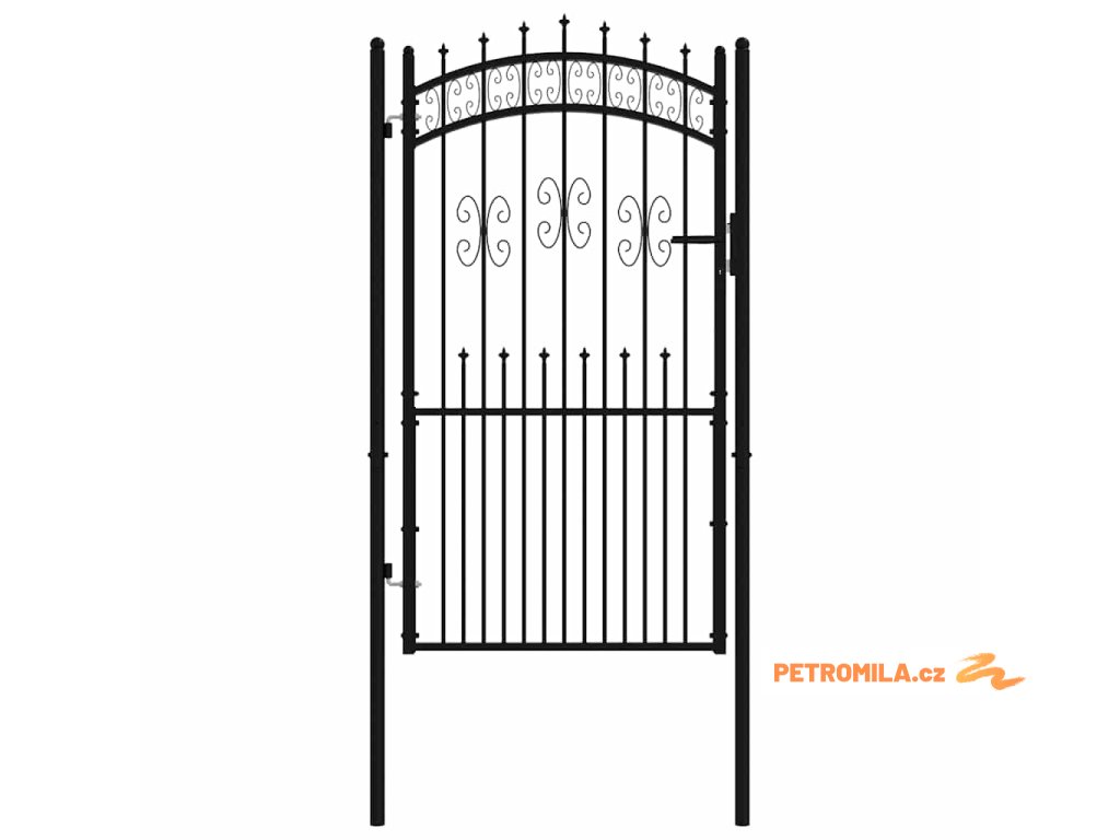 Plotová branka s kopím nahoře černá 103 x 175 cm, práškově lakovaná ocel