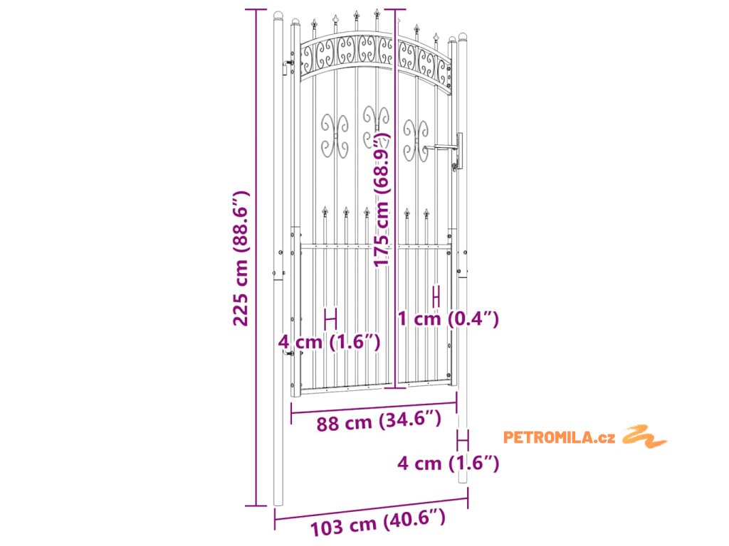 - Konstrukce s vysokým stupněm zabezpečení: Branka poskytuje vysoký stupeň zabezpečení díky elegantní klenuté horní konstrukci a silným vodorovným výztuhám, které zpevňují rám a zároveň vytvářejí úžasný vstup na váš pozemek.