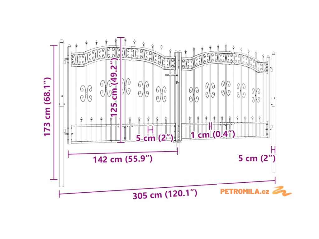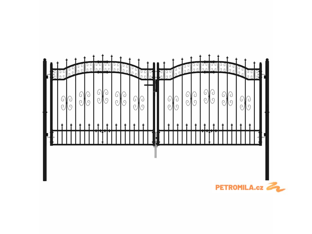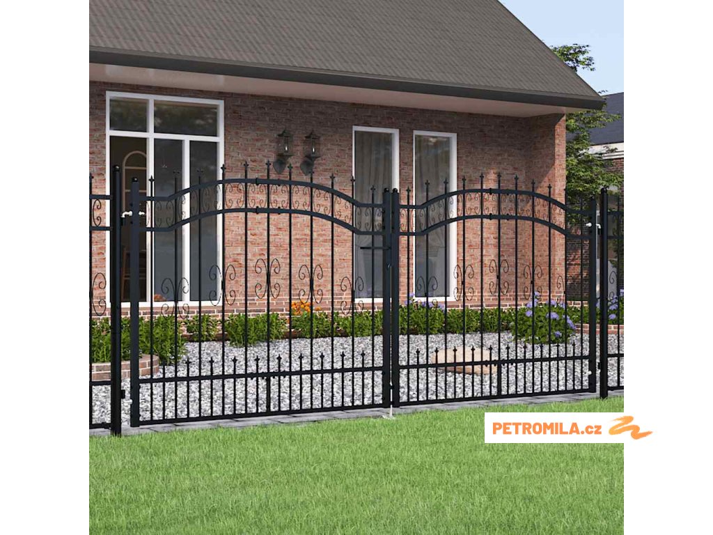 Plotová branka s kopím nahoře černá 305 x 125 cm, práškově lakovaná ocel