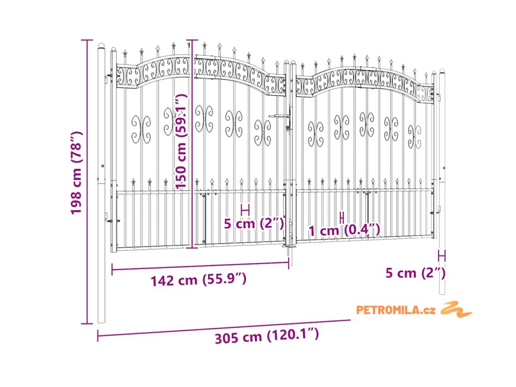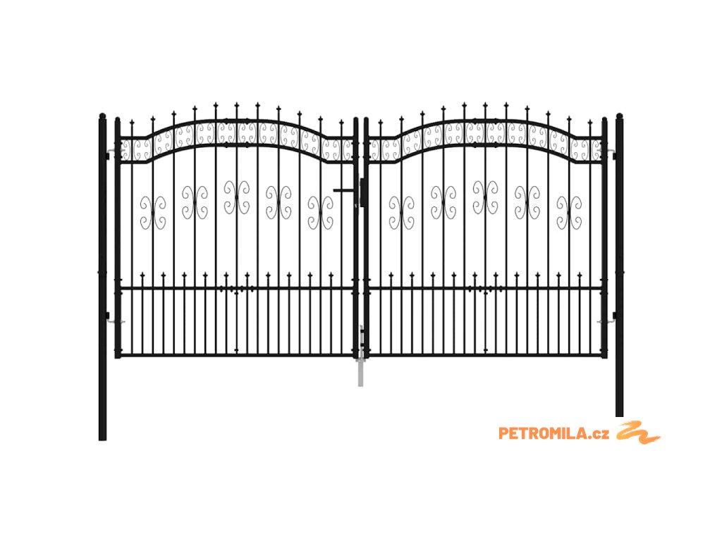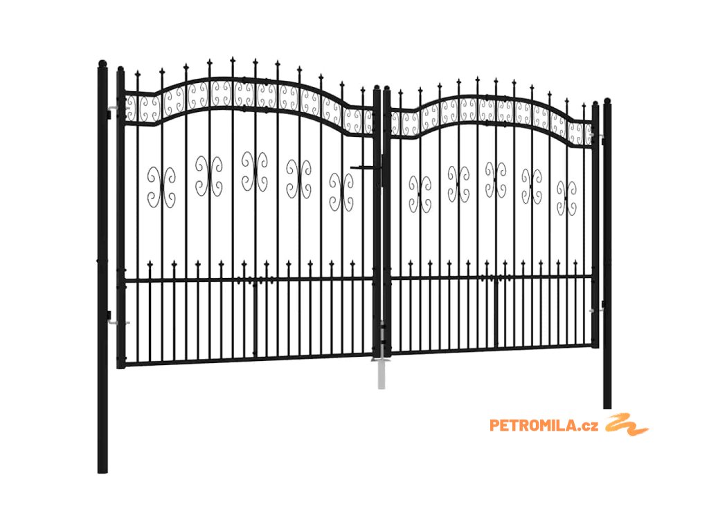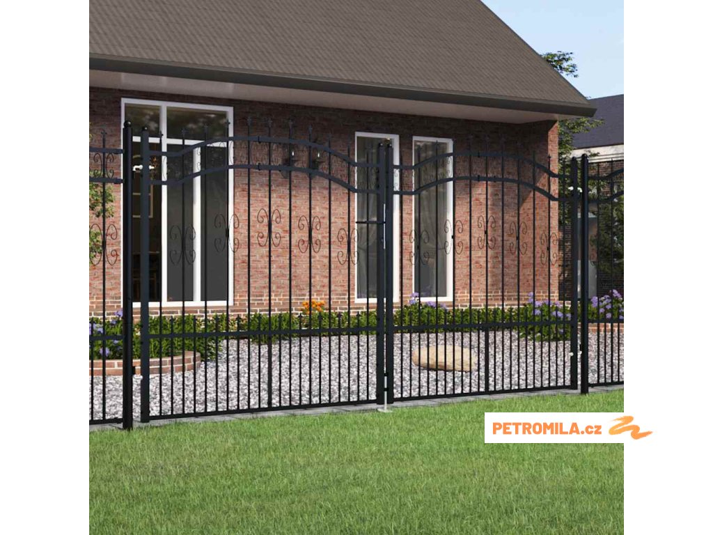 Plotová branka s kopím nahoře černá 305 x 150 cm, práškově lakovaná ocel