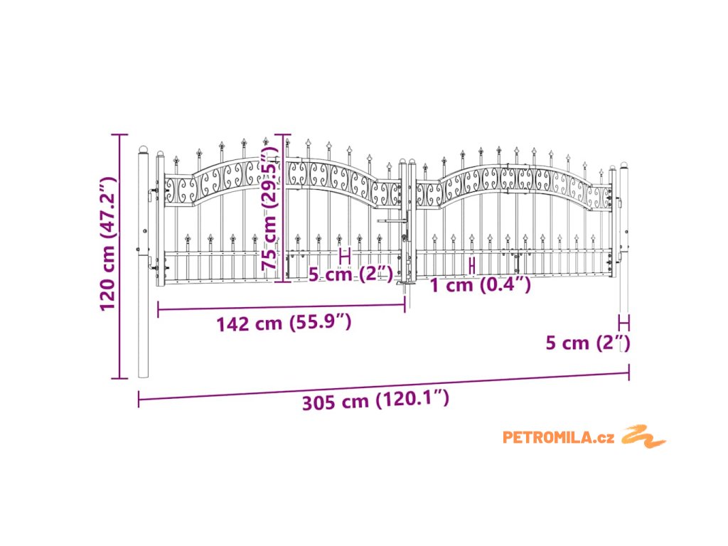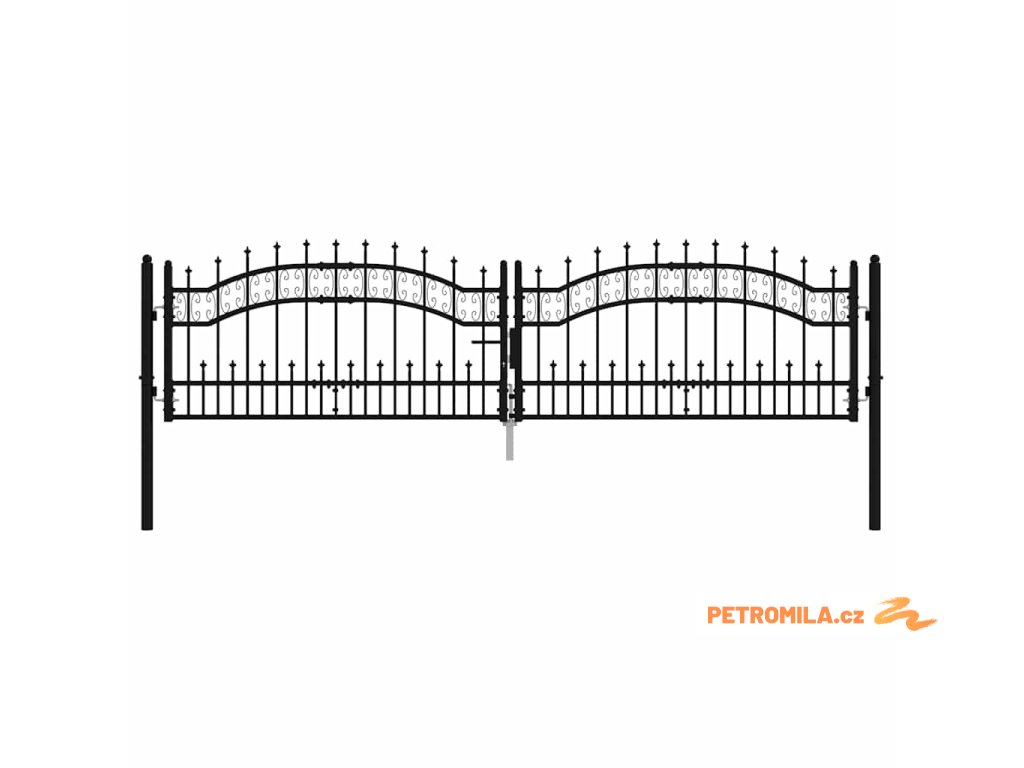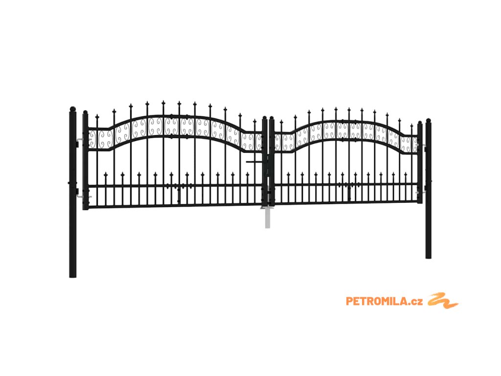 Plotová branka s kopím nahoře černá 305 x 75 cm, práškově lakovaná ocel