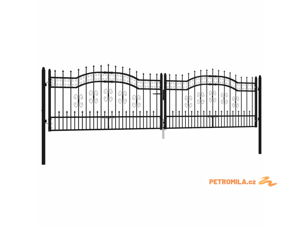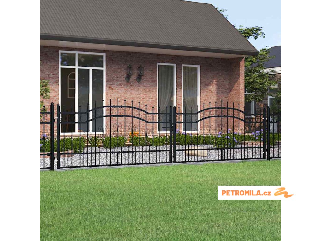 Plotová branka s kopím nahoře černá 406 x 100 cm, práškově lakovaná ocel