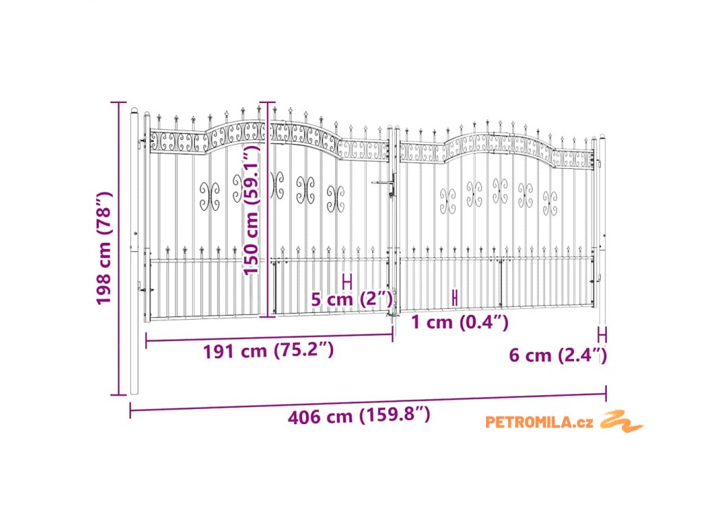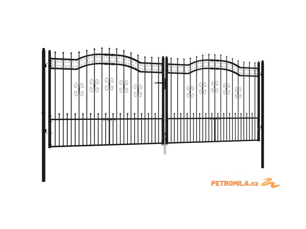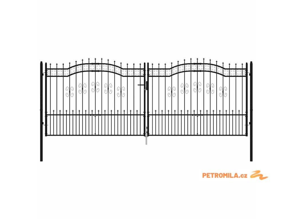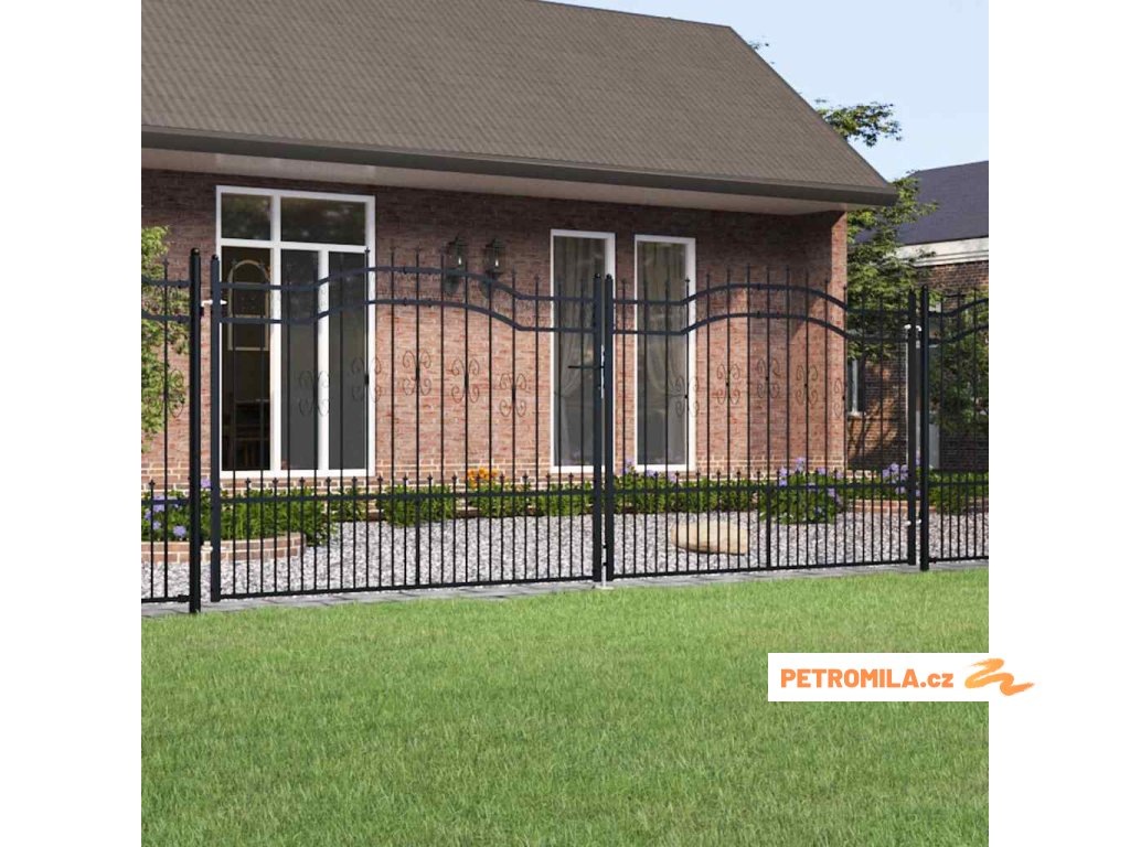 Plotová branka s kopím nahoře černá 406 x 150 cm, práškově lakovaná ocel