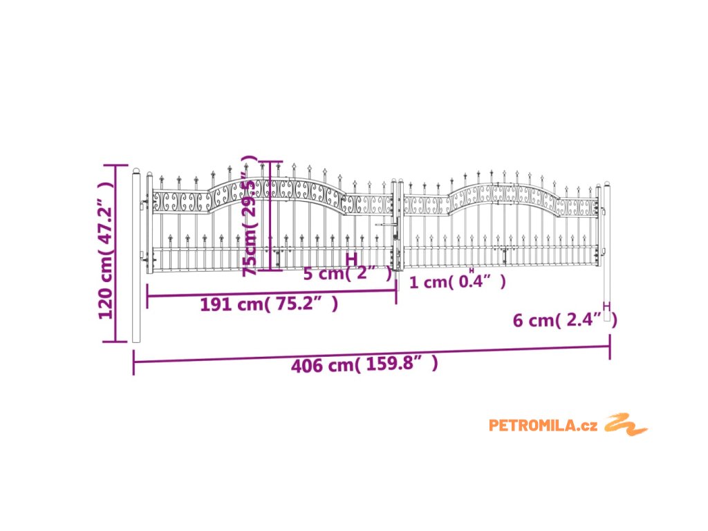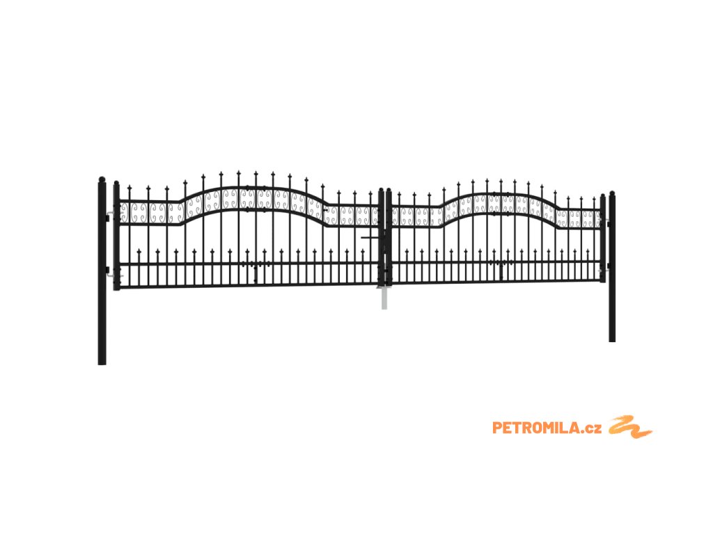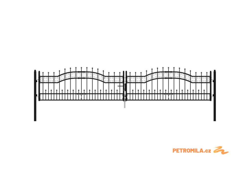 Plotová branka s kopím nahoře černá 406 x 75 cm, práškově lakovaná ocel