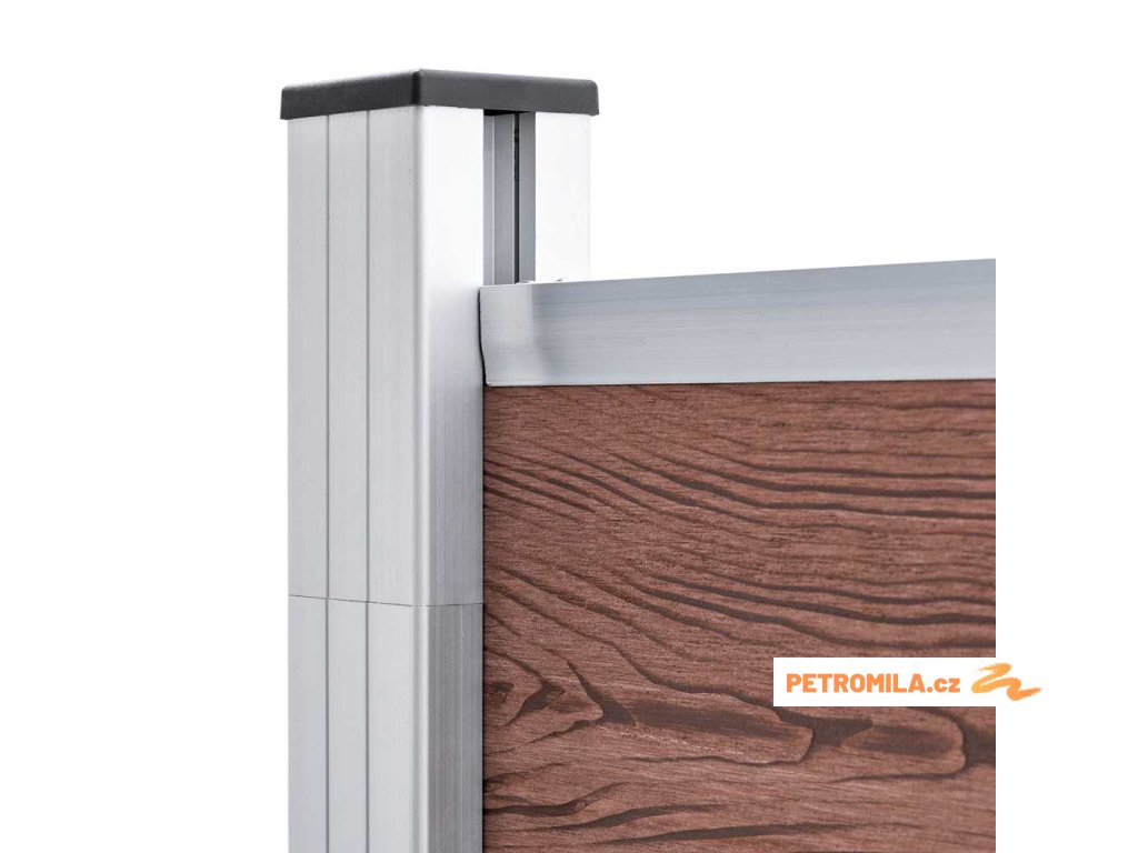 - Materiál: dřevoplast + hliníková lišta a sloupky