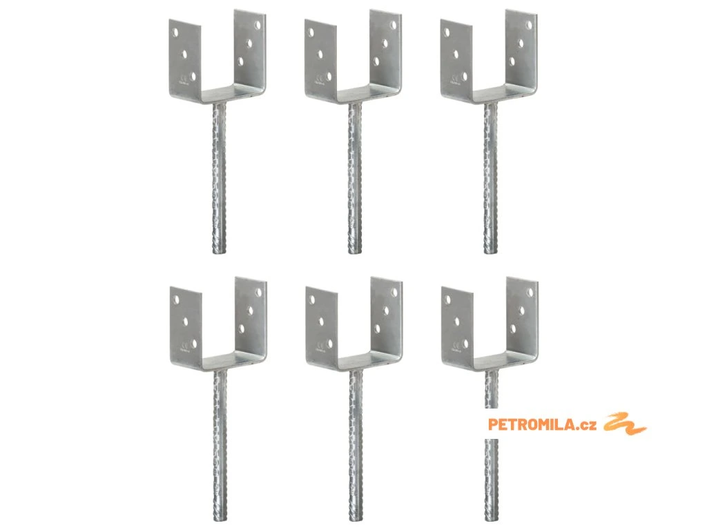 Plotové kotvy 6 ks stříbrné 10 x 6 x 30 cm pozinkovaná ocel