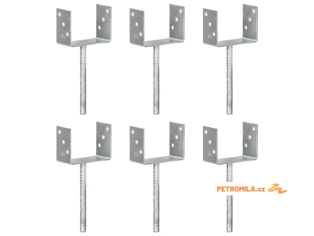 Plotové kotvy 6 ks stříbrné 14 x 6 x 30 cm pozinkovaná ocel