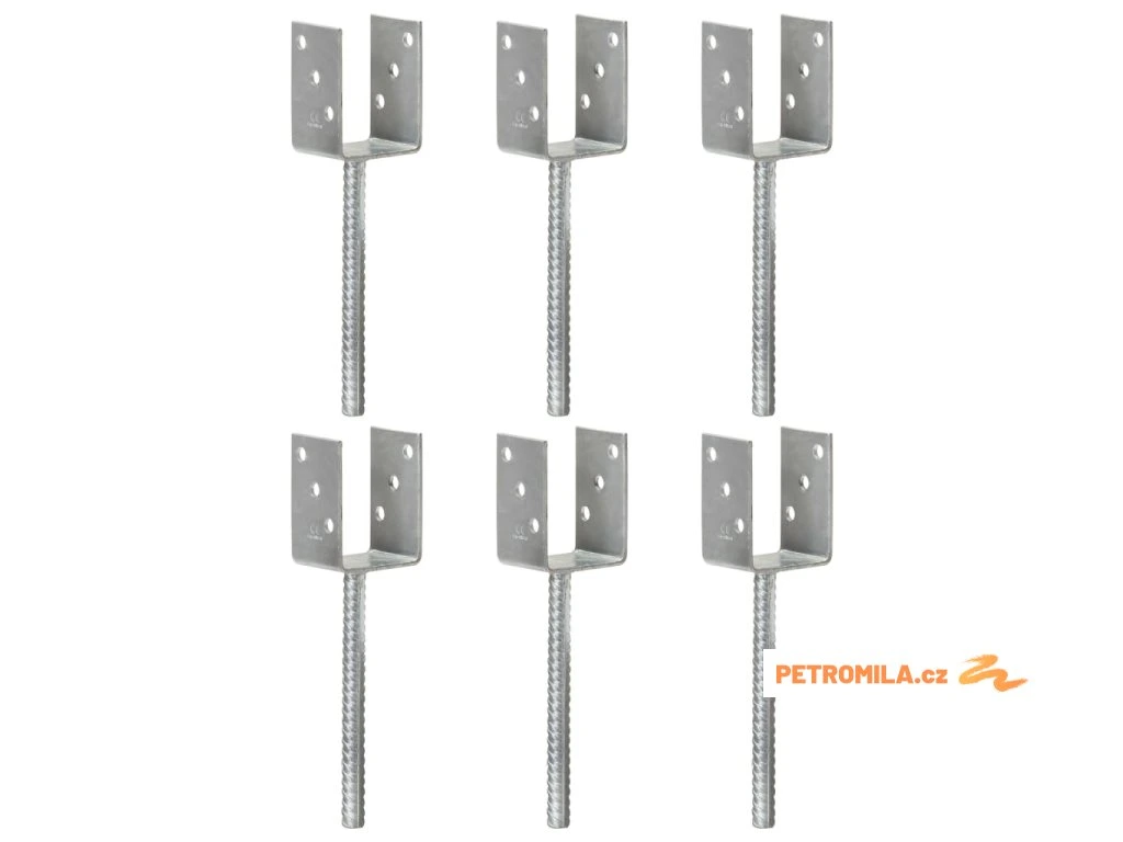 Plotové kotvy 6 ks stříbrné 7 x 6 x 30 cm pozinkovaná ocel